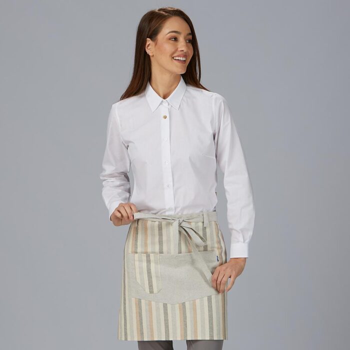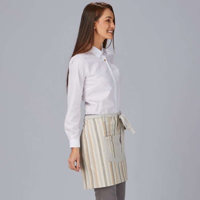 Krótki fartuch w paski Striped Mix to połączenie nowoczesnego designu, praktyczności i wygody, stworzone z myślą o profesjonalistach z branży gastronomicznej, hotelarskiej i handlowej. Jego elegancki, jasnoszary wzór w paski nadaje stylowy, dopracowany charakter każdemu uniformowi.