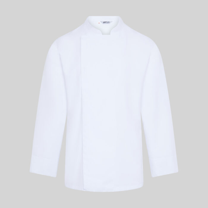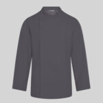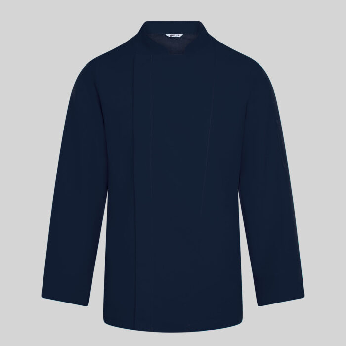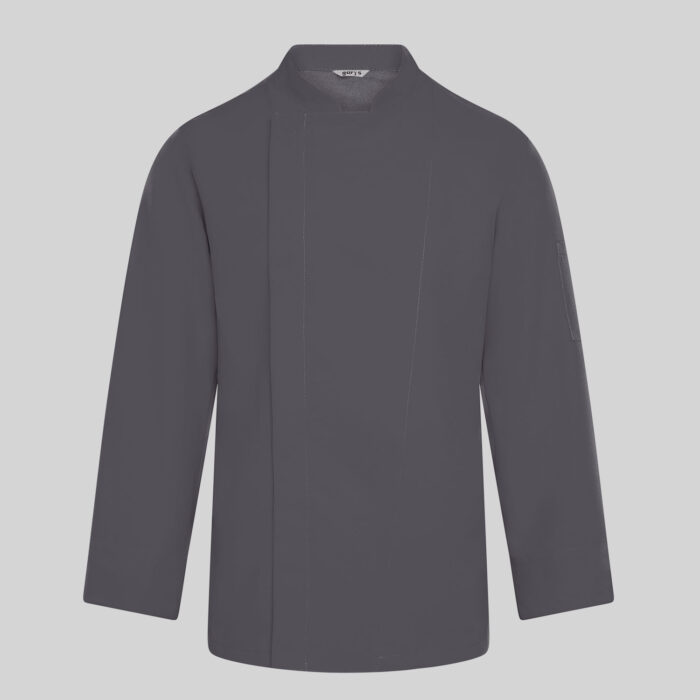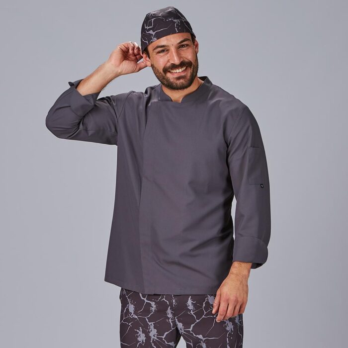 Kurtka kucharska męska Vidal to połączenie nowoczesnego stylu, komfortu i higieny, stworzone z myślą o profesjonalnych kucharzach i personelu gastronomicznym. Jej elegancki krój z kołnierzem mao i asymetrycznym zapięciem na ukryte napy nadaje całości minimalistyczny, nowoczesny wygląd, a podwijane mankiety zapewniają wygodę i idealne dopasowanie podczas pracy.